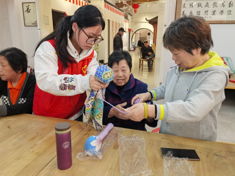10月29日,设计学院学生志愿者走进五星街道谭墅村,开展“银铃巧匠・锤暖重阳”艾草养生锤DIY活动。设计学院党总支书记管丹、学院关工委常务副主任营佳、学校关工委骨干朱静慧以及多位辅导员共同参与。
