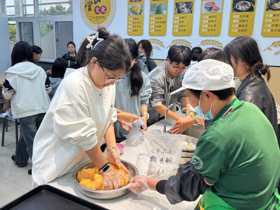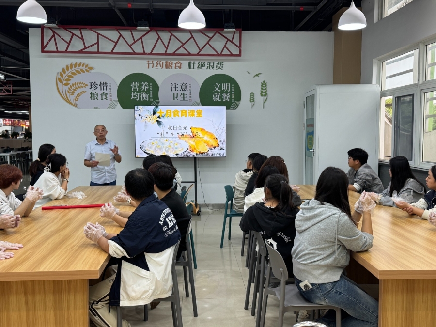 10月30日,设计学院联合后勤服务部举办“敬老思亲逢重阳 饼甜圆糯暖时光”美食文化体验活动。活动特邀扬子餐饮崔锦华老师讲解重阳传统饮食文化,师生共同了解秋令食材的搭配与养生价值。在实践环节中,大家动手制作糯米红薯饼与桂花圆子,品尝亲手制作的美食。造型多样的红薯饼展现了同学们的创意,传统食俗与现代创新思维在活动中有机融合,相得益彰。