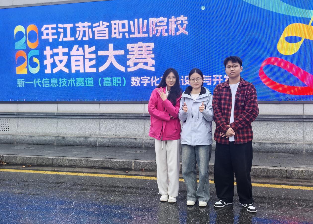 2026年4月10日至12日,江苏省职业院校技能大赛“数字化产品设计与开发”赛项在南京信息职业技术学院成功举办。我校设计艺术学院数字媒体技术专业严龙欣、周雨灿、储金涛三名学生,在万莉君、王晓宇两位教师指导下,凭借卓越表现荣获一等奖,充分展现了学校在数字技术领域的育人成果。